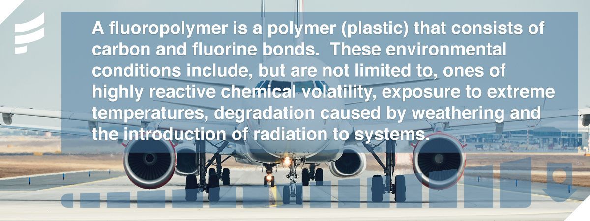 A fluoropolymer is a polymer (plastic) that consists of carbon and fluorine bonds. These environmental conditions include, but are not limited to, ones of highly reactive chemical volatility, exposure to extreme temperatures, degradation caused by weathering and the introduction of radiation to systems. In the aerospace industry, fluoropolymers can appear in the form of coatings for electronic systems and batteries, custom liners for aircraft interiors, custom tubing for cable and wire insulation and more.